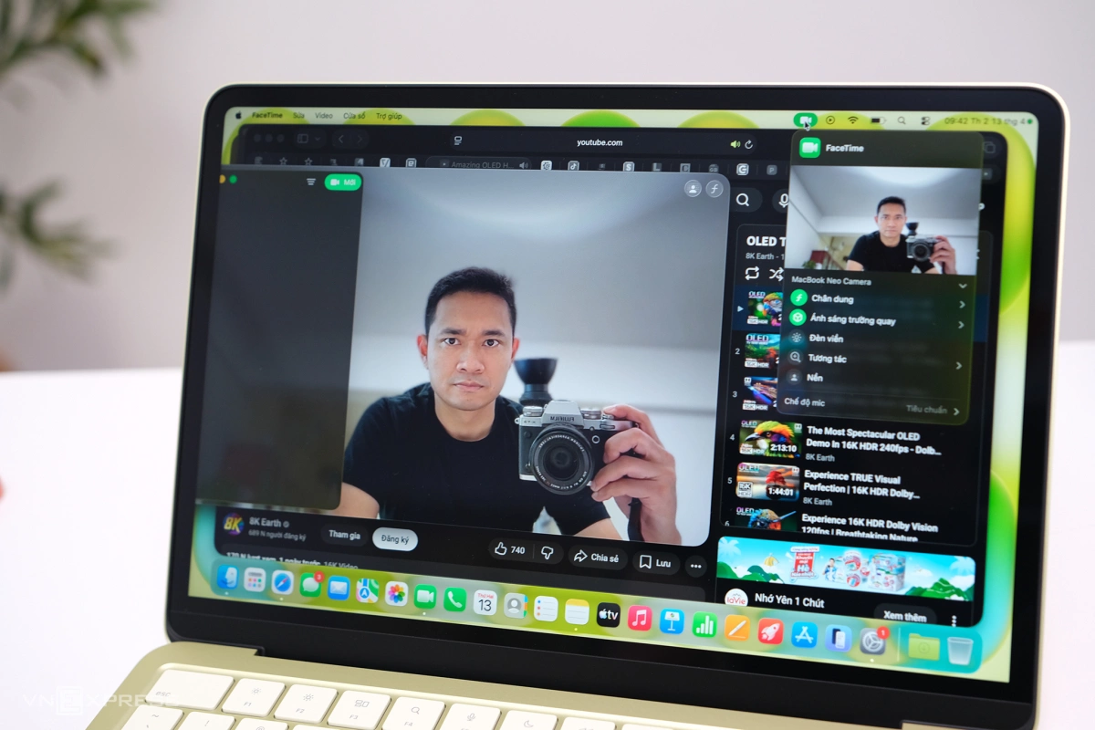 Không sử dụng tai thỏ nhưng Neo vẫn có FaceTime HD 1080p cùng hai micro để đàm thoại. Chất lượng camera tốt, hỗ trợ đầy đủ tính năng như xóa phông, thay đổi hình nền, ánh sáng trường quay nhưng không có tự động căn giữa khung hình (Center Stage).