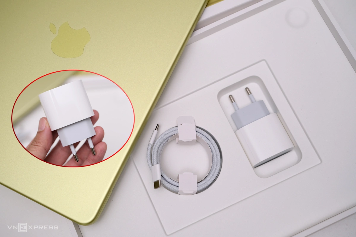 Neo là mẫu MacBook duy nhất không sử dụng chuẩn sạc Magsafe mà thay bằng cổng USB-C phổ biến. Nhược điểm là máy đi kèm sạc 20 W trong khi các mẫu khác tối thiểu 60 W. Việc có pin nhỏ hơn nhưng sạc công suất thấp hơn khiến máy có thời gian sạc đầy 2-3 tiếng tương tự các model dòng Air hay Pro. Người dùng có thể tận dụng sạc của iPhone để sạc cho MacBook Neo mà không cần đem theo hai bộ sạc.