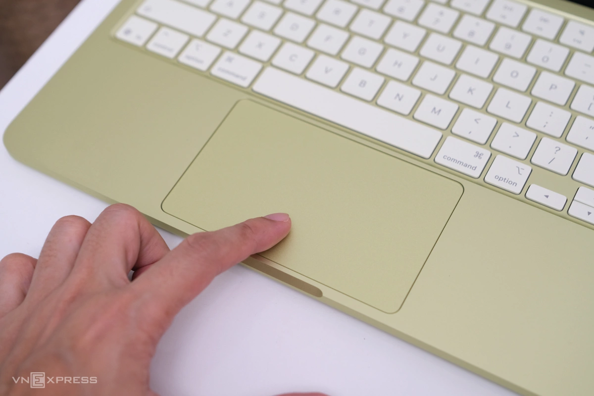 Máy cũng không có bàn di chuột Force Touch như tất cả máy tính MacBook khác mà thay bằng Multi-Touch đơn giản. Nút trên touchpad này cũng là vật lý thay vì nút ảo có phản hồi xúc giác. Cảm giác khi bấm mạnh trên touchpad sẽ cứng hơn, đòi hỏi nhiều lực hơn, trải nghiệm không "sang" bằng Air hay Pro. Tuy nhiên, nếu người dùng quen với cài đặt Chạm để bấm, sự khác biệt này không quá quan trọng. Khả năng hỗ trợ đa cử chỉ, vuốt để thực hiện các thao tác vẫn mượt mà, không có sự khác biệt so với thông thường.