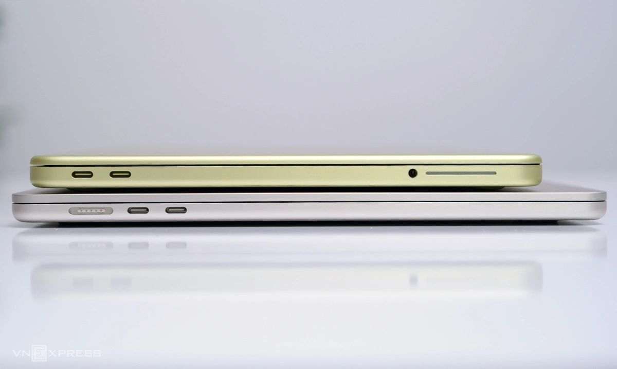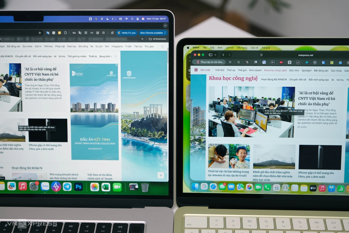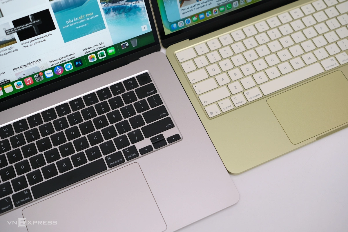 MacBook Neo 13 inch so dáng với MacBook Air 15 inch. Ngay cả khi xét cùng mẫu 13 inch, Neo cũng nhỏ hơn một chút (13 so với 13,6 inch). Trong khi MacBook Air M5 có mức giá thấp nhất khoảng 30 triệu, sự chênh lệch khoảng 14 triệu đồng đủ để Neo trở nên hấp dẫn với những người yêu thích máy tính Mac mà không muốn chi quá nhiều tiền.