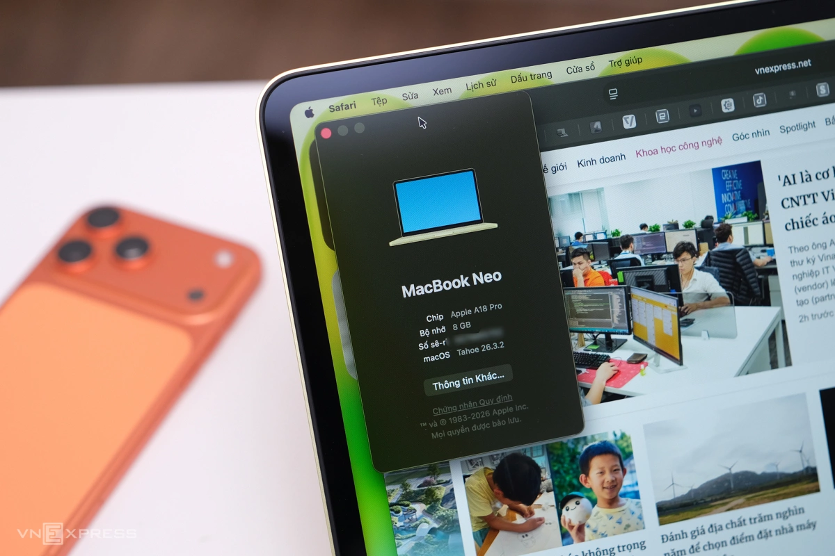 Các hệ thống bán lẻ tại Việt Nam đánh giá MacBook Neo là laptop Apple được quan tâm nhất trong ngày mở bán nhiều năm qua. Sản phẩm tới tay người dùng Việt từ ngày 9/4 với bốn màu và hai lựa chọn cấu hình. Mức giá rẻ khiến Neo thu hút, nhưng đi kèm những hoài nghi về cấu hình, đặc biệt là thông số RAM 8 GB liệu có đủ cho một trải nghiệm mượt mà.