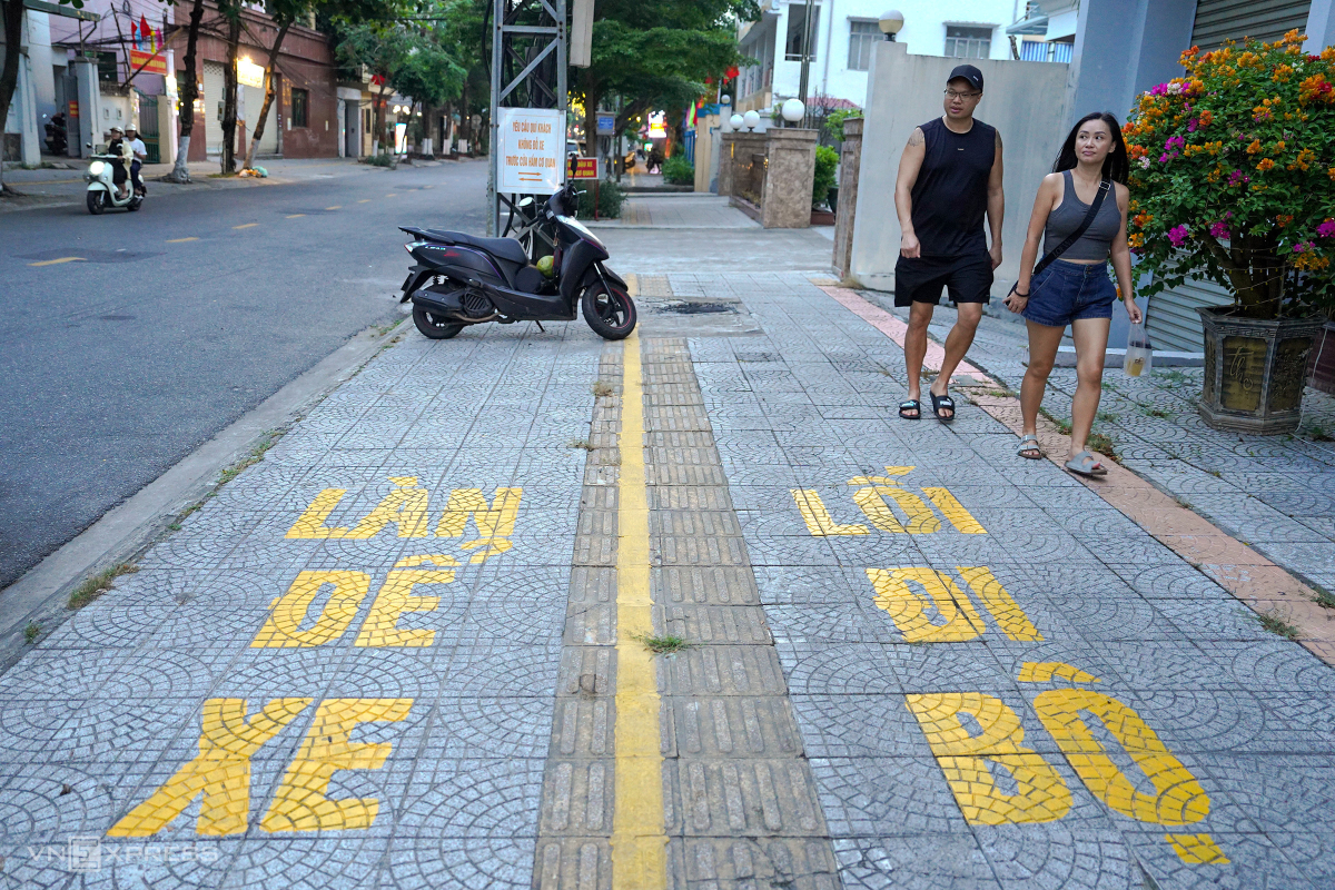 Vỉa hè đường Trần Quý Cáp, phường Hải Châu, được kẻ sơn hai làn cho xe máy và người đi bộ. Nhiều phường, xã ở Đà Nẵng đã và đang kẻ vạch phân cách trên vỉa hè theo hướng dẫn của Sở Xây dựng.