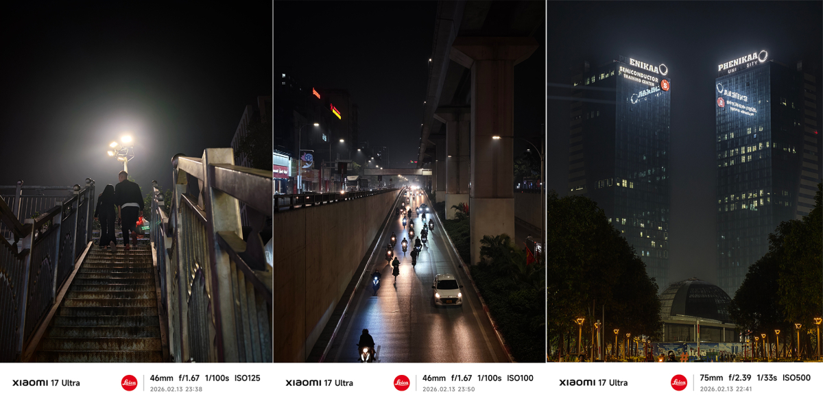 Xiaomi 17 Ultra nâng cấp lớn nhất ở khả năng chụp tối nhờ cảm biến cải tiến, dải tương phản động 14 EV. Với chỉ ánh đèn từ bóng LED công suất nhỏ ở phía trước, ảnh vẫn cho độ sắc nét. Tuy nhiên, ảnh chụp từ máy Xiaomi thường có xu hướng đẩy tương phản lên một chút so với thông thường, tạo điểm nhấn cho chủ thể cũng như tách biệt vùng sáng, tối, làm nổi bật màu sắc.