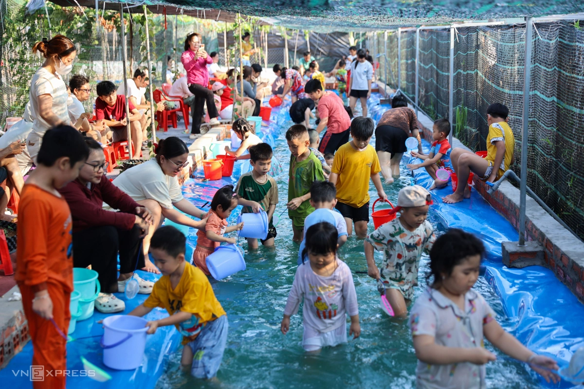 "Thấy vẫn còn khu vực đất trống, tôi thử đào ao, thả cá cho vui, ai ngờ lại đông khách, nhất là trẻ em", chị Tú nói.