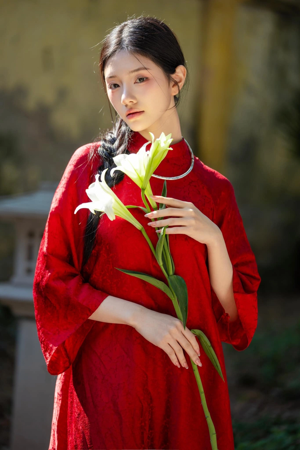 Rayeon tạo dáng với áo dài dịp Tết Bính Ngọ.