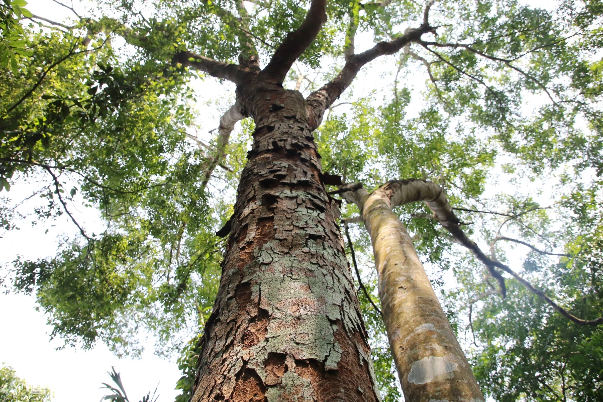 Trong rừng có hàng trăm cây lim đường kính gần một mét, xen với nhiều loài gỗ, tạo tầng tán xếp chồng nhau.