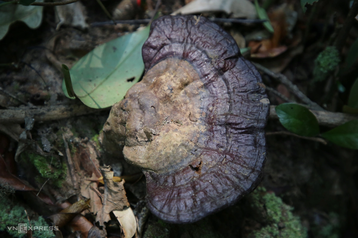 Cây nấm đường kính 15 cm đang phát triển dưới gốc cây lim chết. Khu rừng mát mẻ vào mùa nắng, ẩm thấp vào mùa mưa nên nhiều loài nấm sinh trưởng. Nấm lim ông thu hoạch để sử dụng dần.