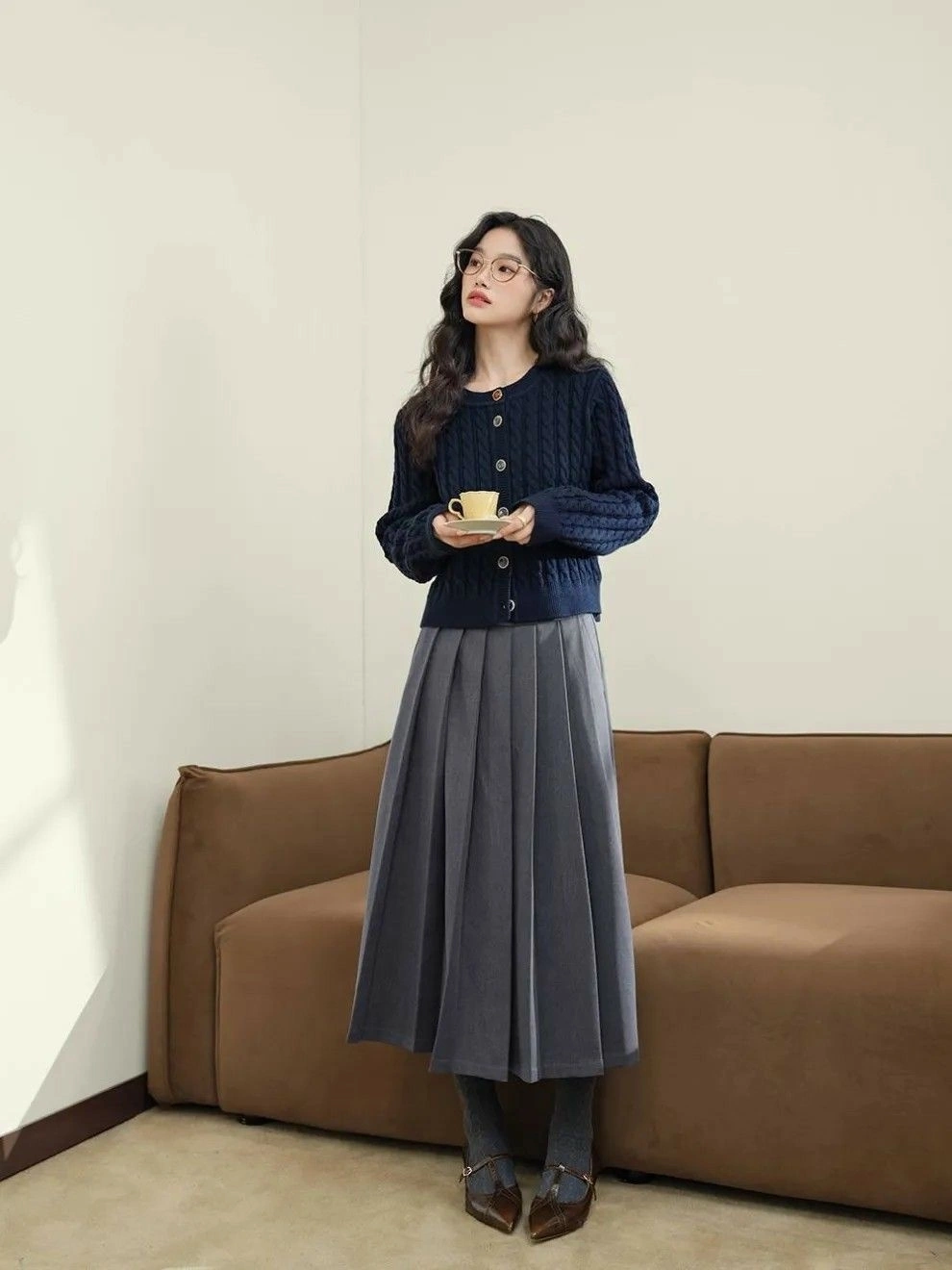 Tương tự, chân váy midi xếp ly cũng nằm trong nhóm quần áo lỗi mốt. Theo WWW, kiểu váy này khiến người mặc trông già hơn. Thay cho mốt này là váy bút chì dài ngang đầu gối bằng chất liệu phóng khoáng như denim, kaki, nhung tăm.