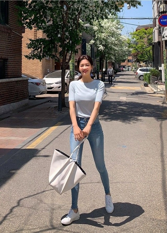 Trong nhóm kiểu mặc lỗi mốt còn có quần skinny jeans. Với dáng bó sát, kiểu quần này có thể làm lộ khuyết điểm của đôi chân, đồng thời tạo cảm giác bí bách.