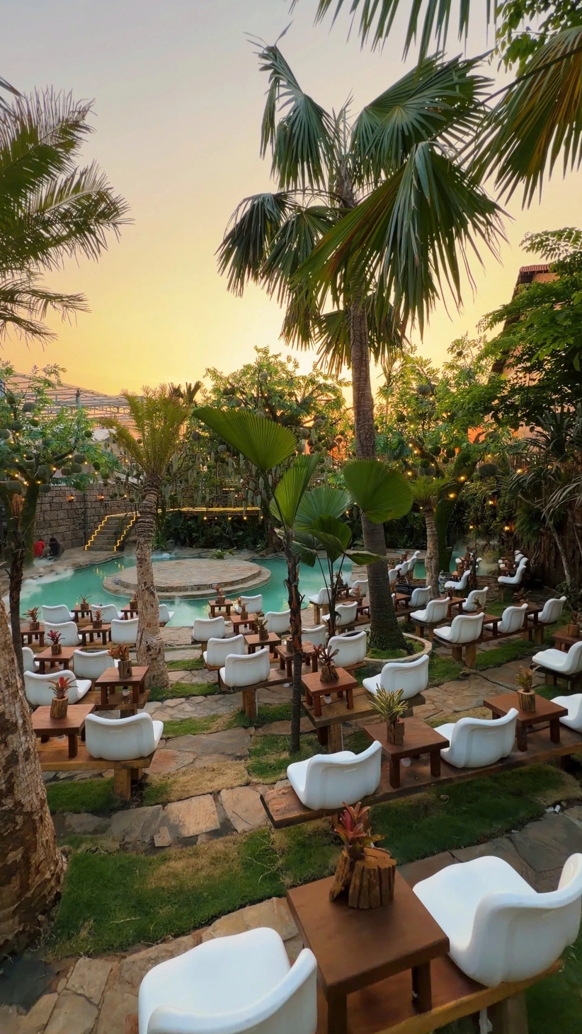 Phần không gian còn lại được thiết kế theo phong cách rừng nhiệt đới, bố cục nhiều lớp cây, phối hợp cây tầm cao, trung, thấp cùng cây leo, bụi, dây rừng để tạo độ rủ.